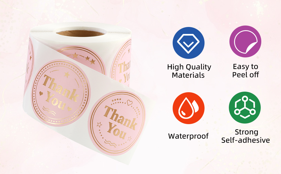 【Quantity & Size】500 round stickers in a roll with 4 different foil gold pink designs. The diameter of the sticker is 2 inch