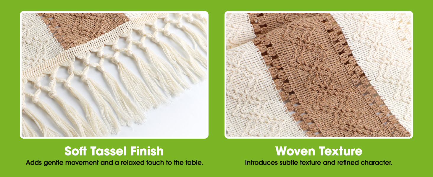 EVERYDAY, HOLIDAY, AND EVENT USE: Ideal for daily styling as well as special occasions, this tassel table runner complements casual meals, seasonal table settings, family gatherings, weddings, bridal showers, baby showers, housewarmings, and festive celebrations, adding a finished, styled look with minimal effort.