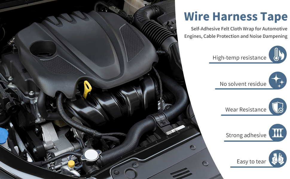 High Temperature Resistant: Made of polyester nonwoven fabric with strong acrylic adhesive, this wire harness tape withstands temperatures up to 221°F. Operates between -40°F to 221°F (-40°C to 105°C).