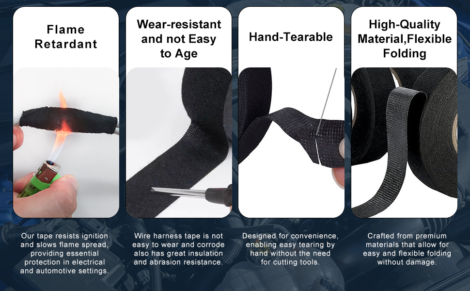 Excellent Performance: wire harness tape delivers strong adhesion, effective noise reduction, easy hand-tearing, reliable heat insulation, and durable wear resistance. Ideal for automotive engine and electrical circuit maintenance, it provides superior insulation and protection.