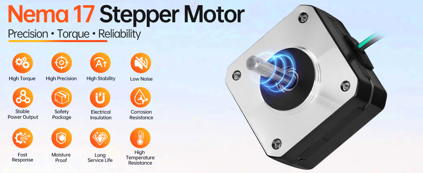 Significant Torque Upgrade: Offering up to 20% more holding torque than typical Nema 17 Step Motor, our version focuses on low-noise operation. Its enhanced steel core and winding design ensure smooth motion and significantly decreased sound emission.