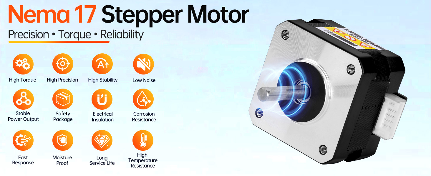 Advanced Steel Construction: Choose our upgraded Nema 17 Step Motor for increased holding torque and remarkably quiet function. Re-engineered steel cores and precision windings minimize noise, contributing to smoother overall system operation with less ambient disruption.