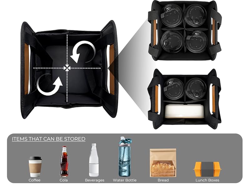 PORTABLE & FOLDABLE - Portable carry handles for you to quickly pick up the cup bag and go. Perfect for food delivery and takeout.Overall foldable design, convenient storage, and space-saving.