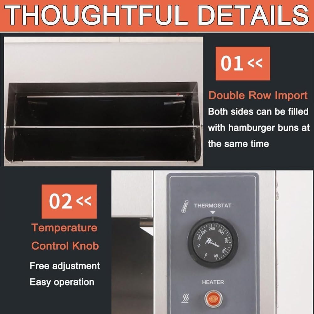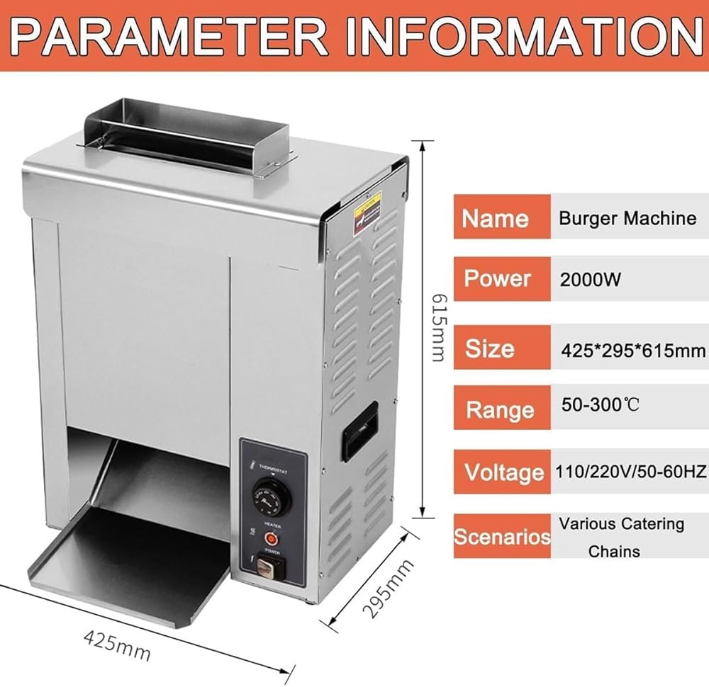 -Multiple temperature settings from 50-300°C for perfect heating of multiple burger buns