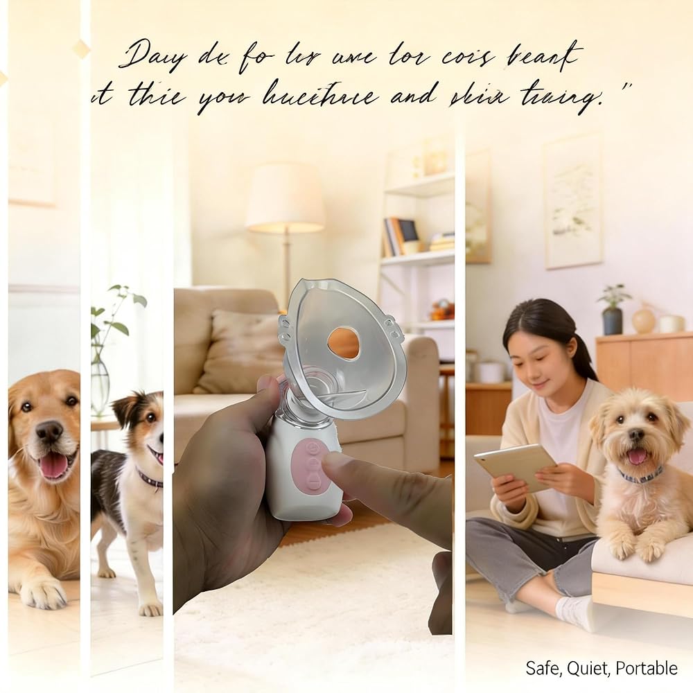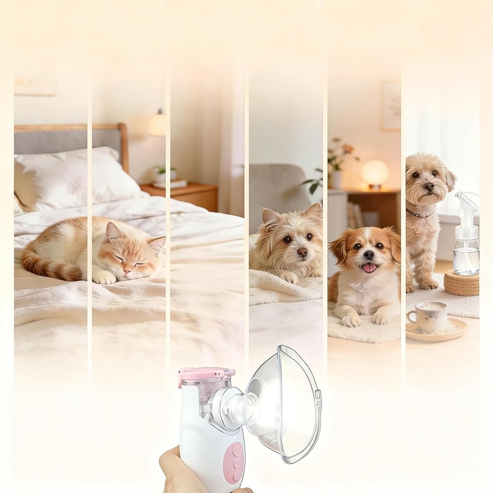 Handheld Mesh Nebulizer for Veterinary Use, Cordless Portable Pet Mist Sprayer with Rechargeable Battery, Ultra-Quiet Operation, Easy to Clean, Compact Design for Dogs Cats Home Use