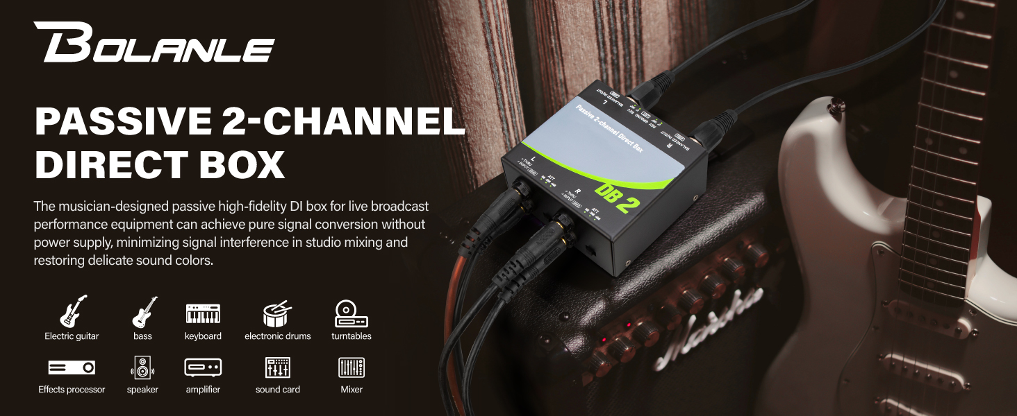 Dual-Channel Passive DI Box: Perfect for electric guitars, basses, synthesizers, and more. The Bolanle Passive 2-Channel Direct Box converts high-impedance signals to low-impedance XLR output, ensuring clear, accurate sound for live performances and studio mixing.