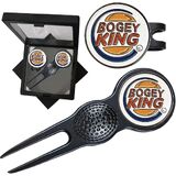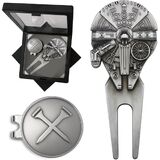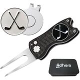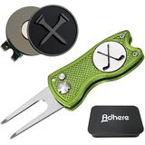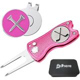 Elevate your golf game with this premium golf accessory set from Adhere. The set features stylish enamel ball markers adorned with crossed golf clubs design, paired with a professional-grade divot repair tool. Available in sleek black, vibrant blue, or eye-catching green, each marker is equipped with strong magnetic backing that securely attaches to the included hat clip. The divot tool showcases a textured grip pattern for optimal control and a durable metal construction that maintains its functionality round after round. The set comes presented in a distinguished metal case, making it an ideal gift for any golf enthusiast. The ball markers' distinctive design helps you quickly spot your ball position on the green, while the precision-engineered divot tool helps maintain course quality. Perfect for both casual players and serious golfers who appreciate quality accessories on the course.