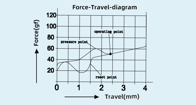 Product Parameters: Feel: Clicky | Operating Force: 50±10gf | Tactile Force:60±10gf | Pre-travel:2.00±0.6 mm | Total travel:4.0±0.6 mm | Mechanical life: 80 million times |