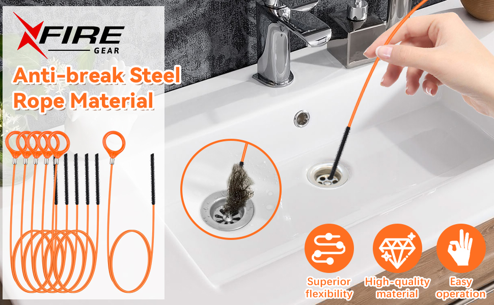 【Improved Micro Hook Design】XFIRE-GEAR snake drain cleaning tool uses micro hooks (0.18inch in width) and is reinforced with tight stitching to prevent the tip from falling off during use. Once inserted into the drain, the micro-hook head can lock and grab hair and debris in seconds