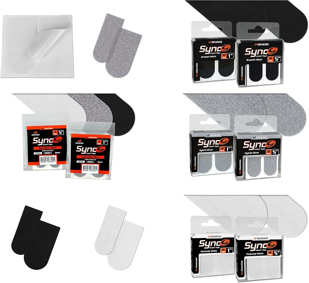 Don't know which Sync is right for you? We have you covered. With a sampling of all 3 Sync styles, you will get to see and feel the unique qualities of each style before investing in a larger quantity. Includes all 3 styles of Sync - Black, Silver and White Try out each style, or keep extra to complement your favorite Each pack contains 2 pieces of each style For use in thumb or finger holes to adjust fit due to shrinking or swelling of the hand. Available in 1/2", 3/4" or 1" widths
