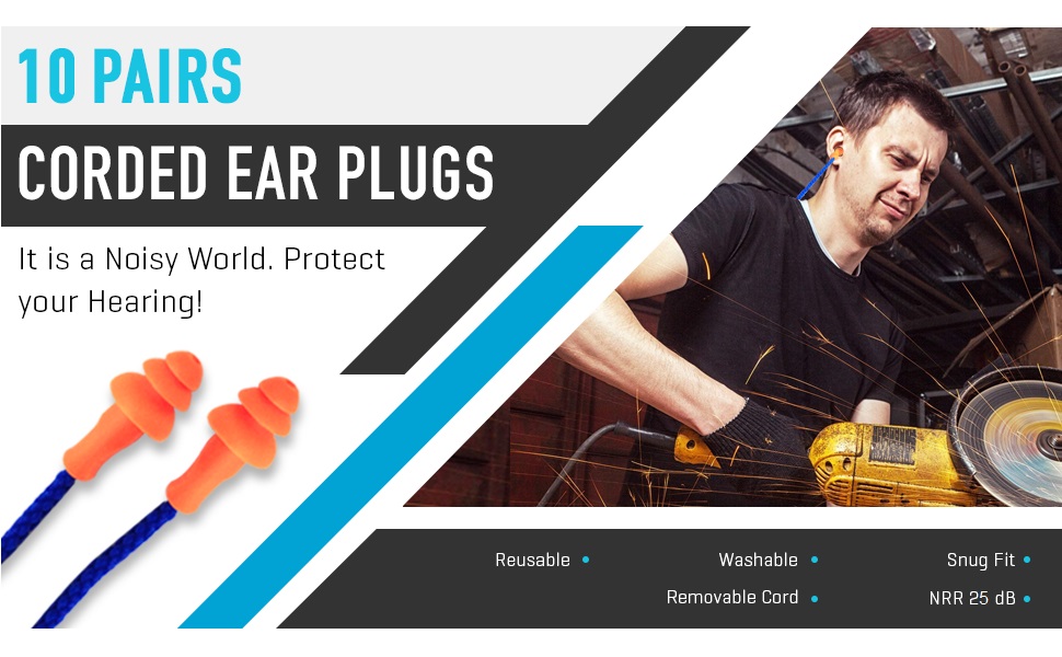 10 Pair Corded Reusable Ear Plugs for Shooting Range Ear Protection for Gun Range - Hunting Ear Plugs for Construction Firearm Ear Protection Shooting Gun Hearing Protection Earplugs Corded