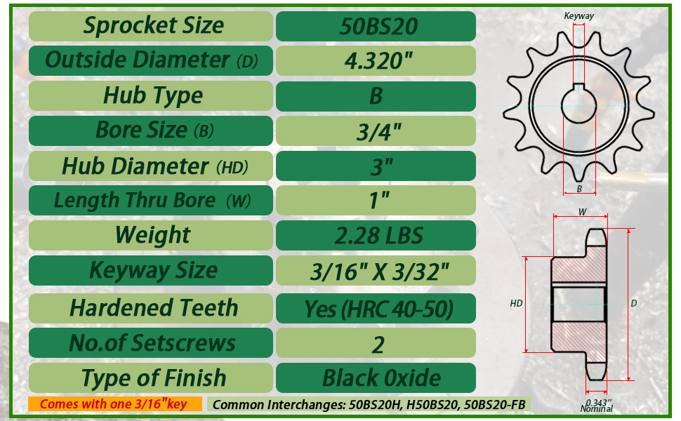 HEAVY DUTY 20 TOOTH SPROCKET – 20 Tooth, 3/4" Bore with 3/16" × 3/32" Keyway & 2 Set Screws – Black Oxide Rust-Proof – Designed for conveyor systems, farm equipment, and industrial heavy duty drive applications