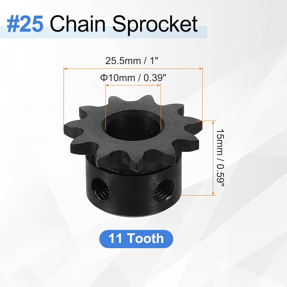 Model: #25 Roller Chain Sprocket B Type 11 Tooth, 10mm Bore, 6.35mm (1/4") Pitch, for ISO 04C Chain.