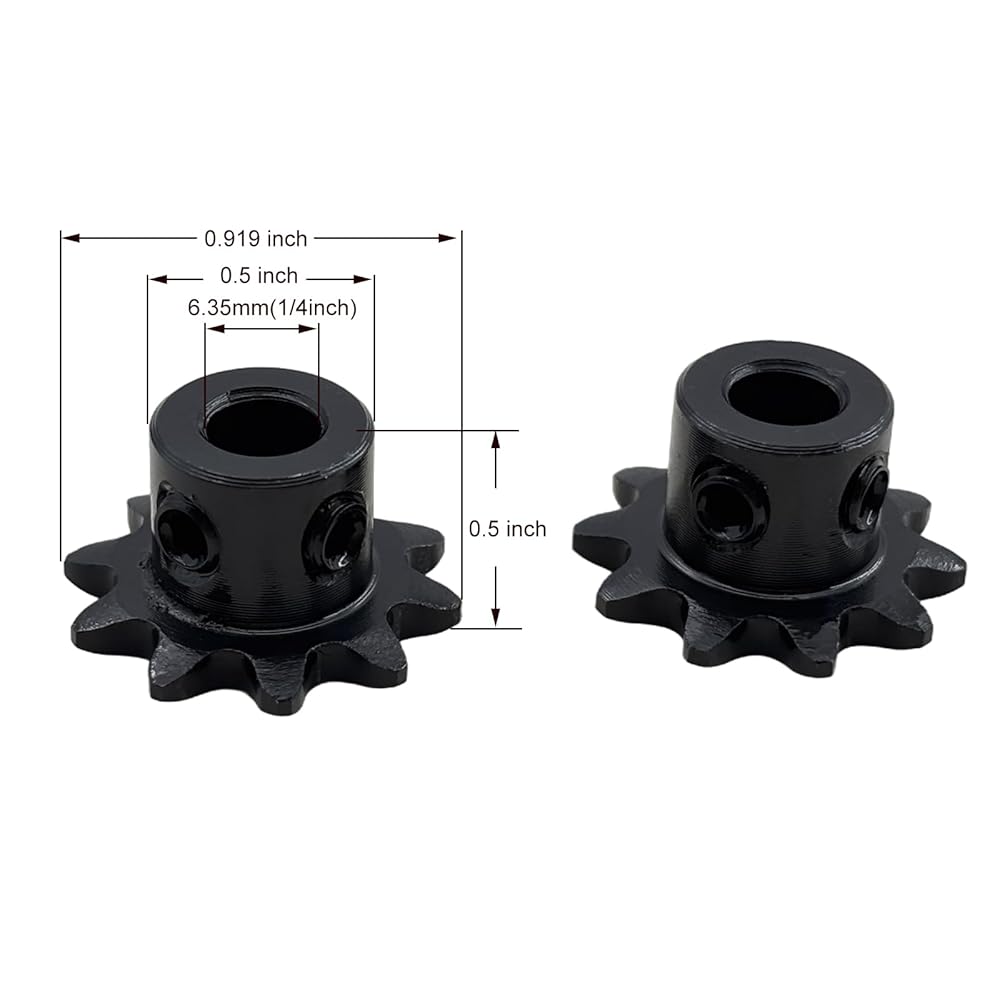 2PCS #25 Roller Chain Sprocket Type B 6.35mm Bore 10 Tooth, Hardened Antirust 1045 Steel 1/4" bore Drive Sprockets 25B10-1/4