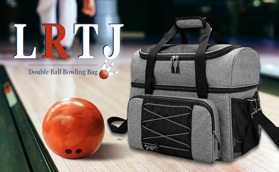 LRTJ Bowling Bags 2 Balls and Shoes-Bag for Bowling ball-Bowling bag with Wooden Ball Holder-Double Balls Tote Bag fits a Single Pair of Bowling Shoes Up to Mens Size 16 and Extra Essentials