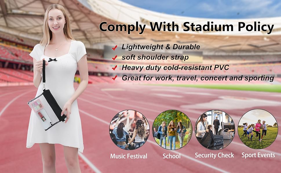 Lightweight Durable Design:Clear shoulder tote bag made of heavy duty Clear PVC waterproof material with top-quality zippers and durable strap clip.Which is perfect for concert, security, stadium sports and much more.