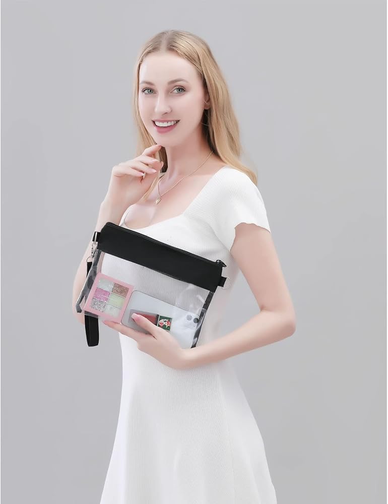 Clear Shoulder Purse/Crossbody Purse/Handbag - Adjustable Cross-body Strap drop from 24-50 inch,can be used as a shoulder purse or crossbody purse;Use 6inch wristlet can be as a handbag.