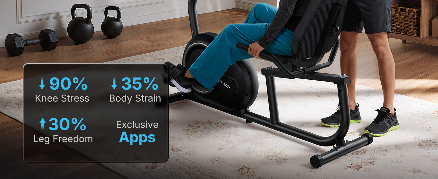 【Ergonomic Comfort & Safety】 Experience 35% less fatigue and 90% reduced knee pressure with our comfortable exercise bike for home, ride more comfortably suitable for rehabilitation patients, seniors and obese people. Its ergonomic seat and low-center-of-gravity design offer a safer more stable exercise bike workout than upright bikes. Make your ride more comfortable!