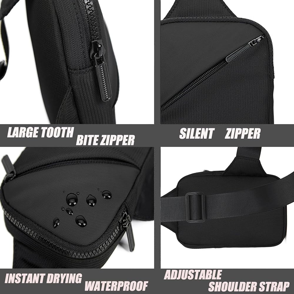 Minimalist Design & Heavy-Duty Durability Exclusively crafted for minimalist carry (NOT a large-capacity bag), this sling bag is made of premium 500D water-resistant nylon for long-lasting use against daily wear and tear. Dual quick-access zipper pockets separate small essentials to prevent scratches, with smooth sturdy zippers for easy use.
