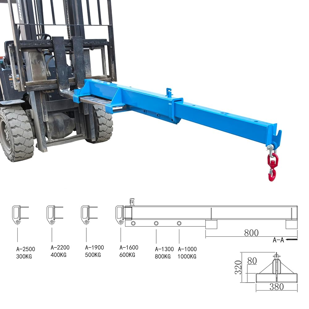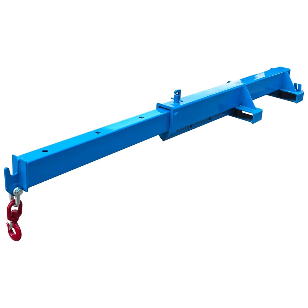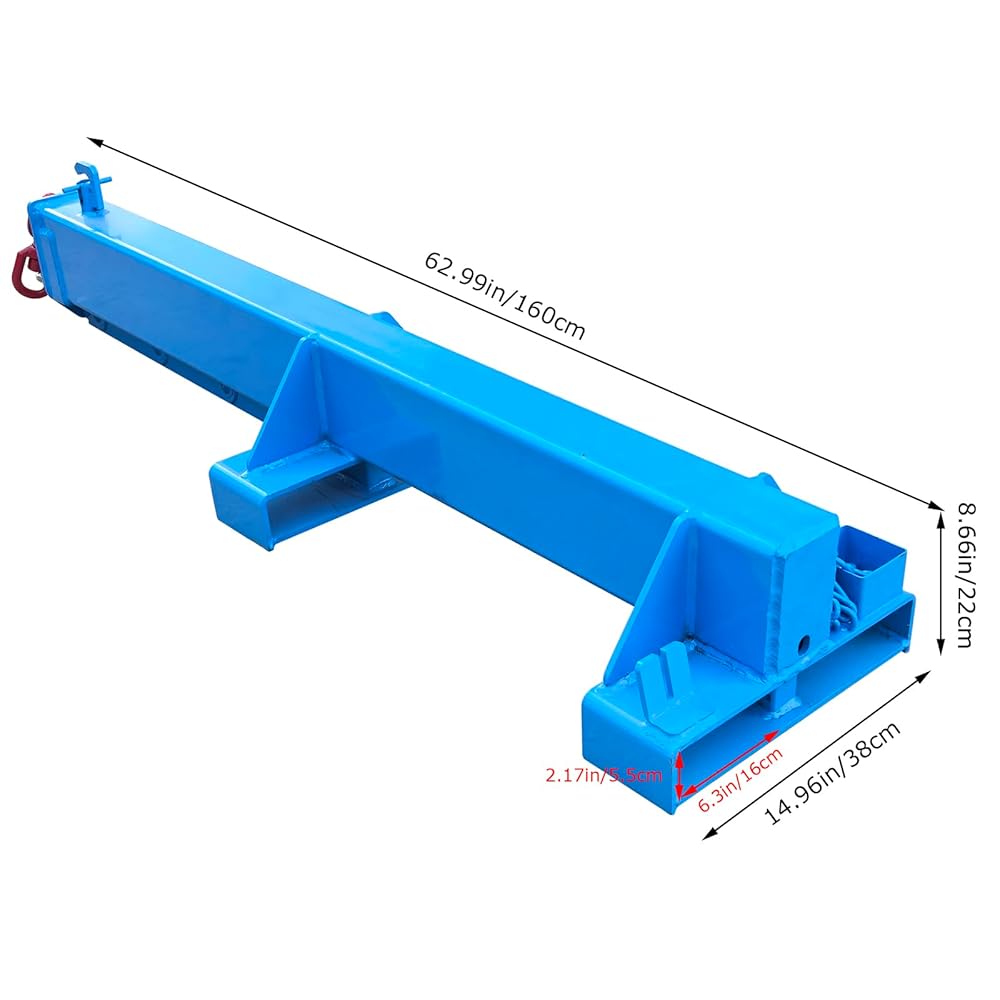 Constructed from high-strength carbon steel and finished in a durable blue coating, this forklift boom attachment supports a maximum load capacity of 1 ton (2200 lbs)—ideal for farms, warehouses, workshops, and light industrial environments.