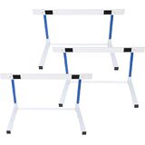 This set of hurdles can withstand the challenge and help you to be a better, faster, and more focused athlete! ?Package List: - 1 x Track and Field Hurdle - 3 x Track and Field Hurdle ?Specification: - Material: Metal - Color: White & Blue - Adjust: 5 Height Adjustable ?Features: - Simple assembly and disassembly. - These are perfect for all ages hurdlers. - Can change hurdle heights in a moment. - Great for indoor and outdoor training and sports events. - durable metal, sturdy and built to last, season after season. - Use the hurdle to improve runners' agility, speed and form. ?Please Note: - Please allow a slight dimension difference due to different manual measurements. - Due to the light and screen setting difference, the item's color may be slightly different from the pictures.