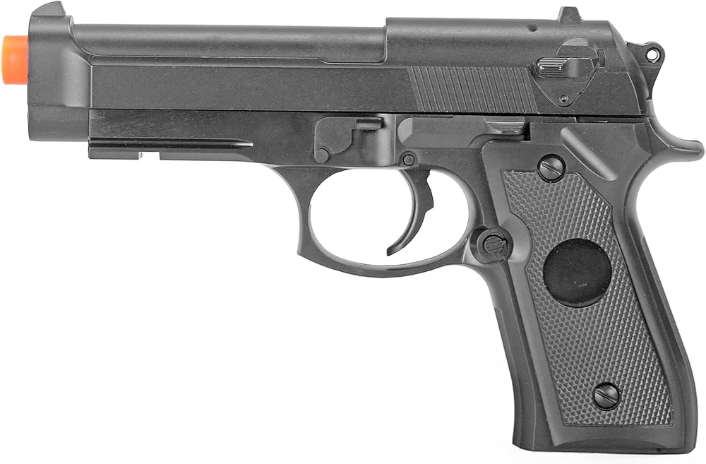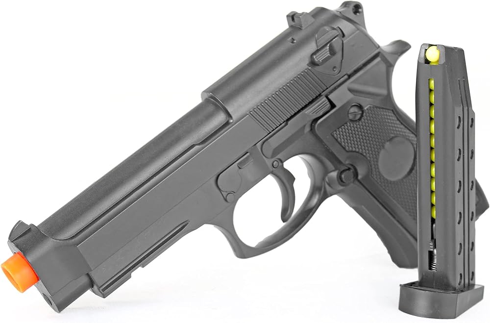 Full scale airsoft pistol gun with detailed finish and Metal Alloy Construction. Great starter gun for beginners