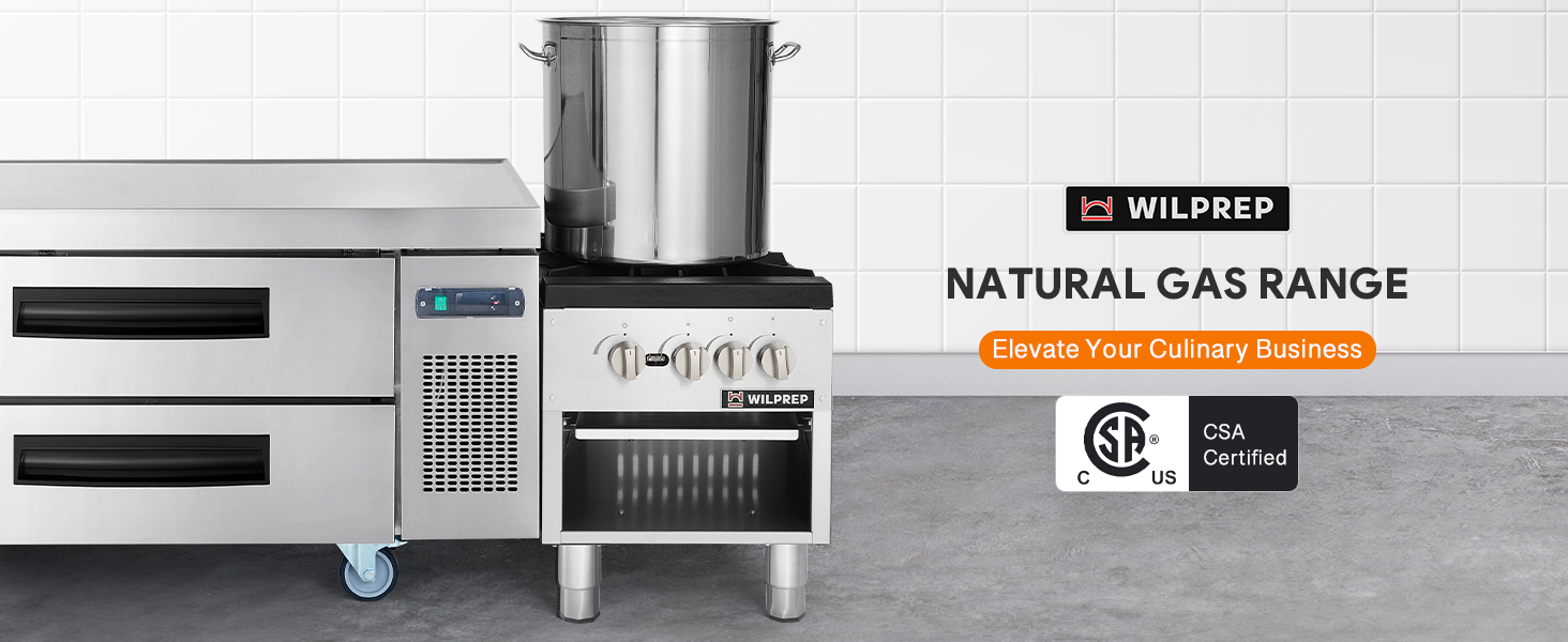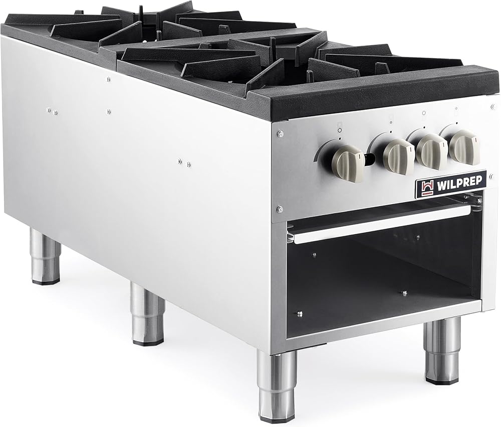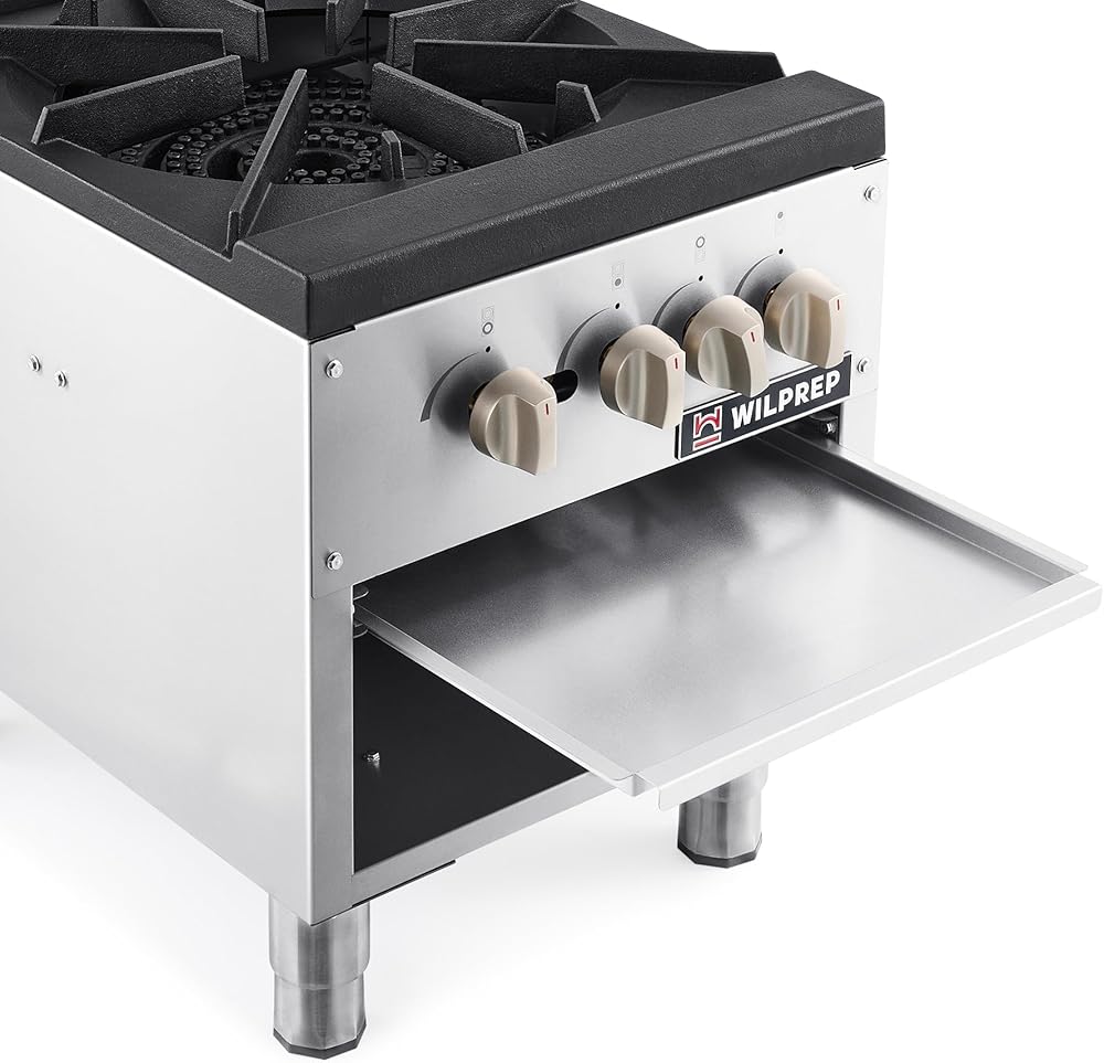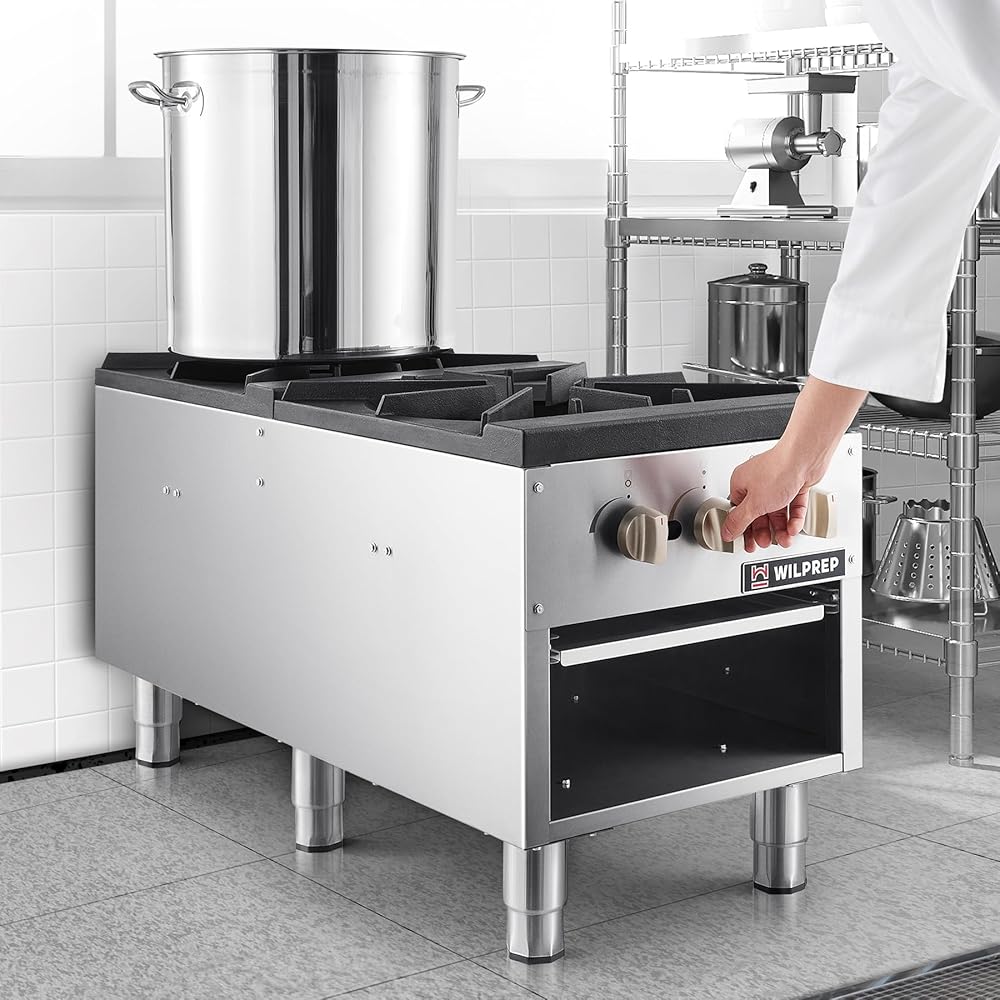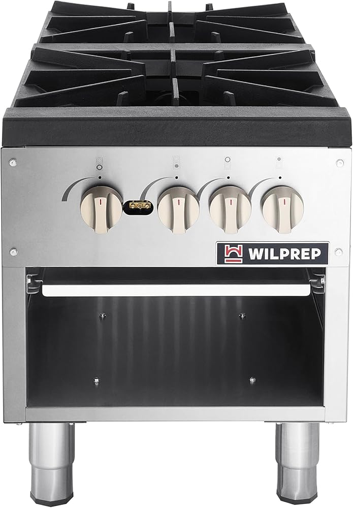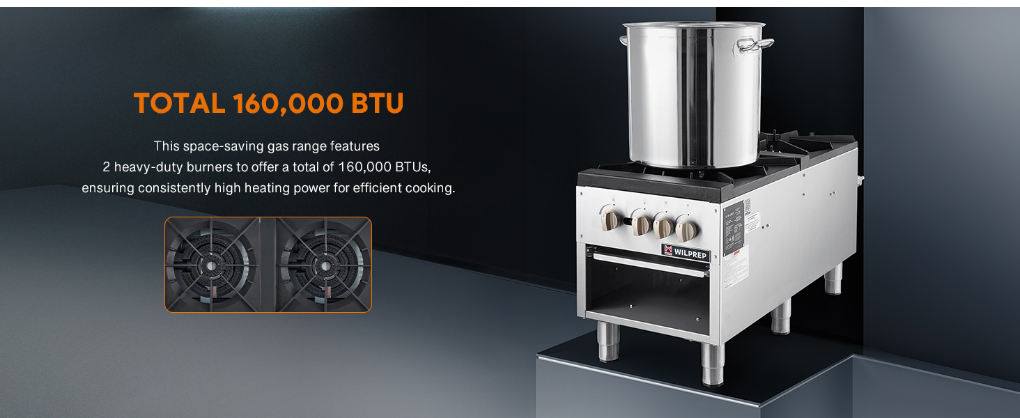 Enhanced Culinary Performance: Boost efficiency with Wilprep's commercial gas range, featuring 2 heavy-duty burners that deliver a total of 160,000 BTUs. Enjoy instant ignition with standing pilots, ensuring smooth kitchen operation even during peak hours
