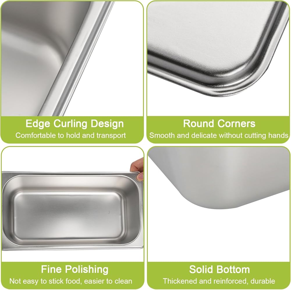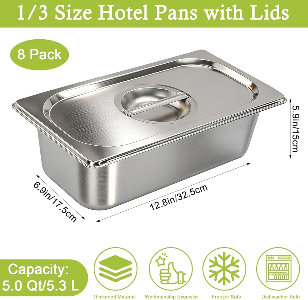 8 × Stainless Steel Steam Table Pan with Lid