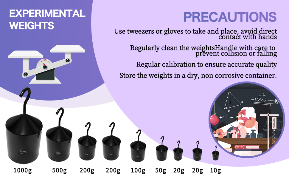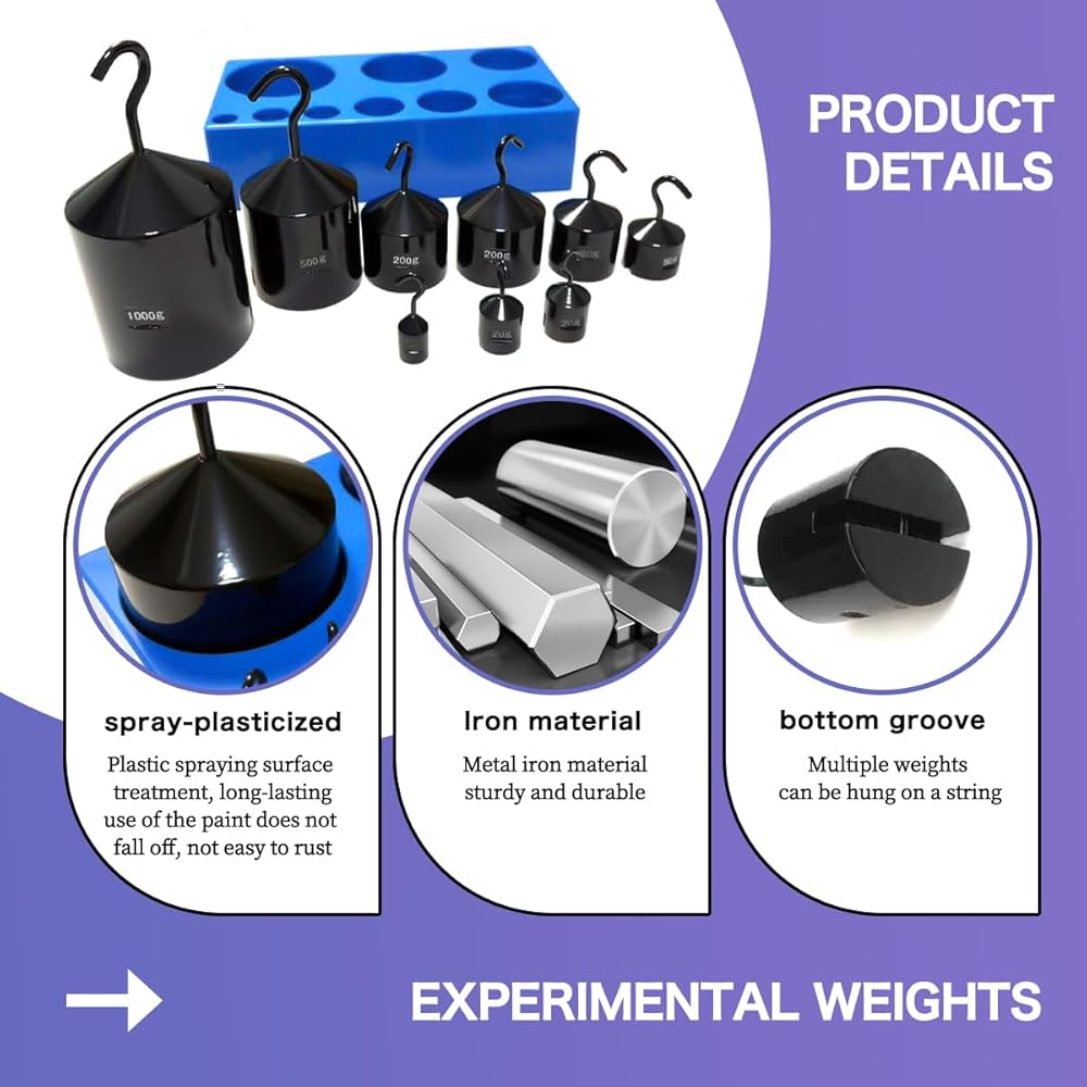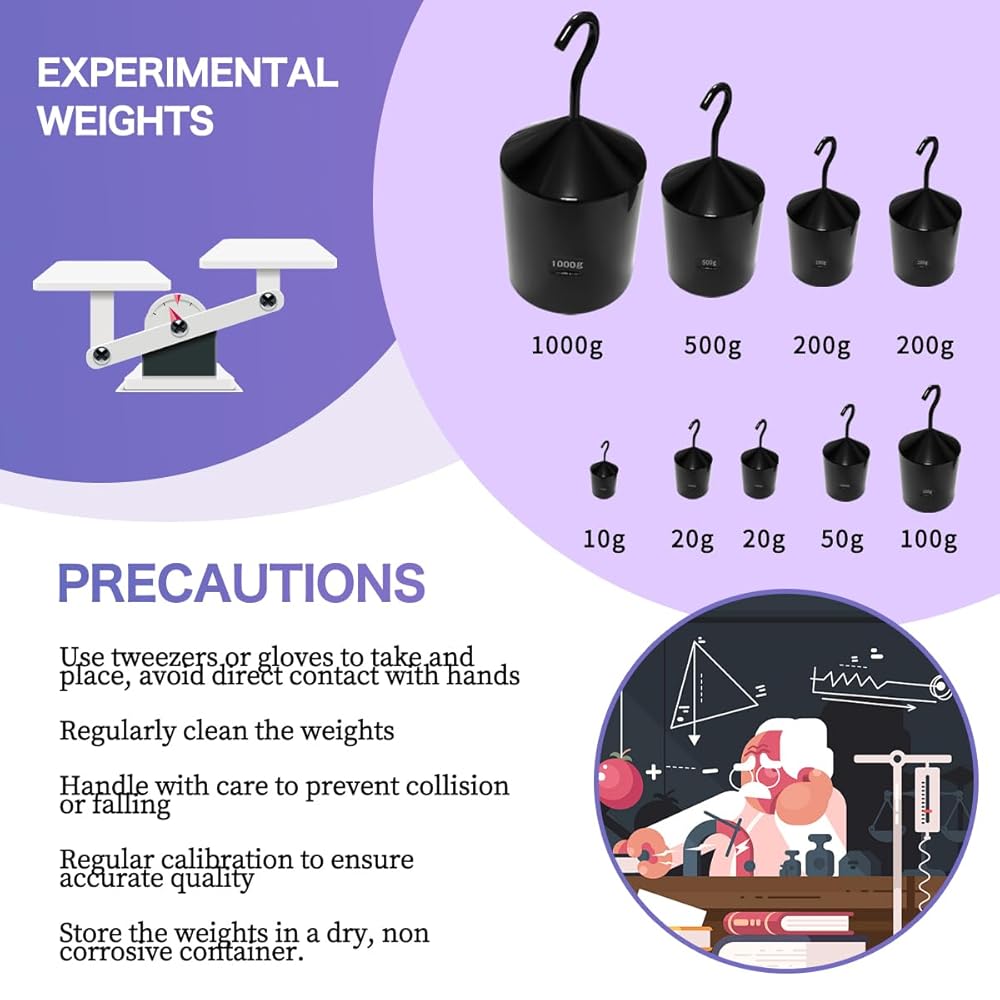 Hooked Weight Set, Set of 9 Weights 10g-1000g,Black