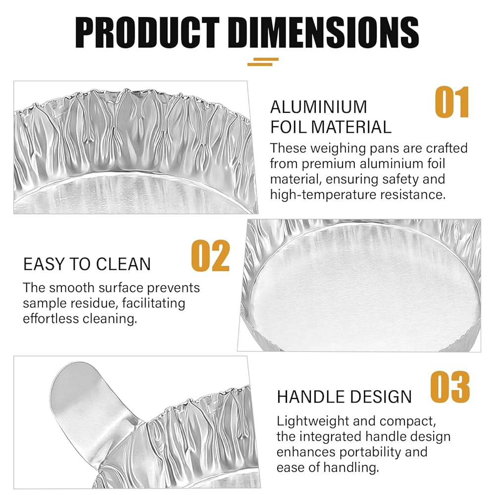 Versatile Applications: Each aluminum weighing dish features a convenient finger handle for easy retrieval and can also serve as a labeling tool. Whether you're conducting chemical analyses, preparing mixtures, or weighing powders, these aluminum weighing pans are versatile enough to handle a variety of laboratory tasks.