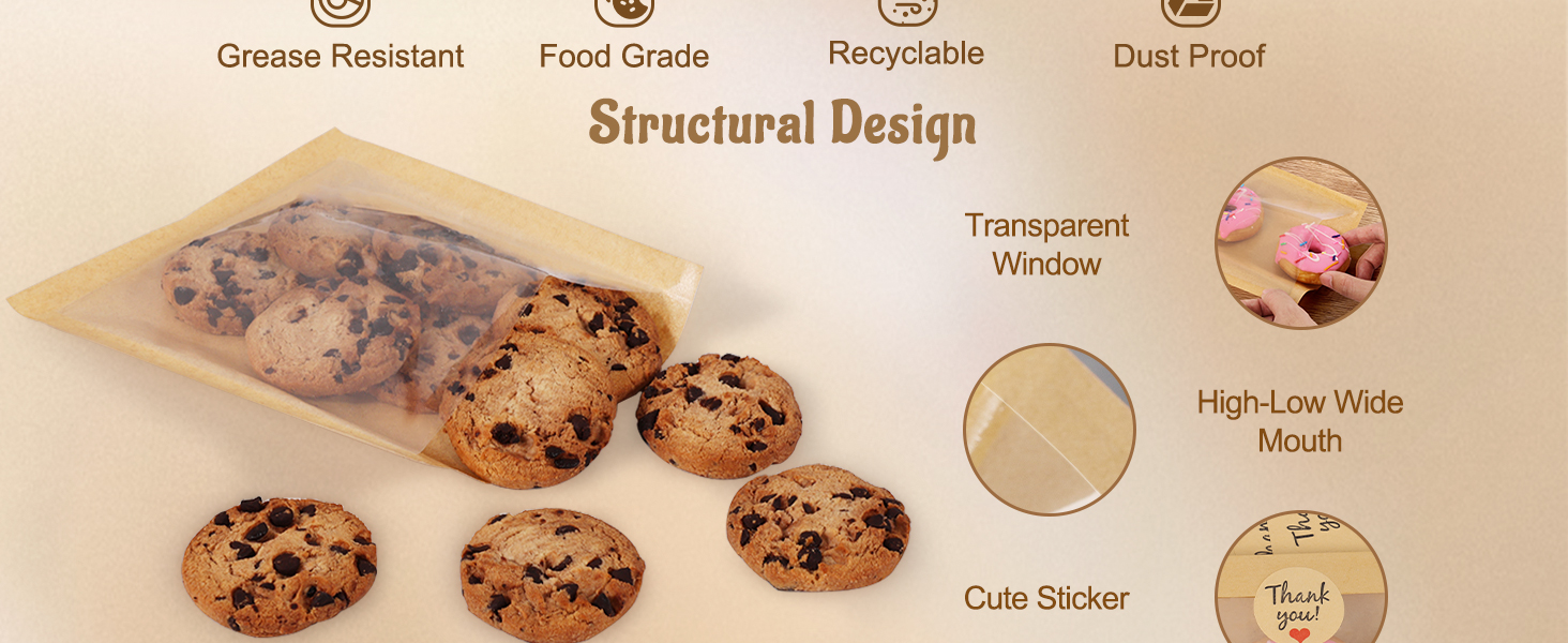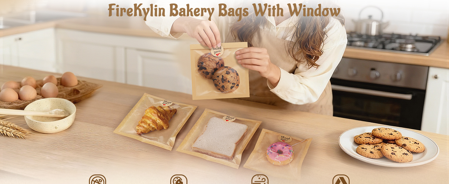 Clear Window Display: The small bread bags featuring a full transparent window on the front, it vividly showcases the exquisite details of desserts, allowing your artisanal creations to be seen at a glance