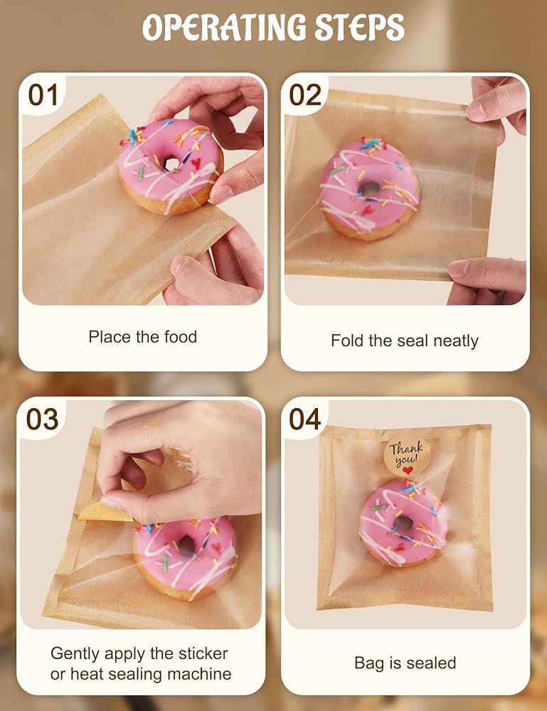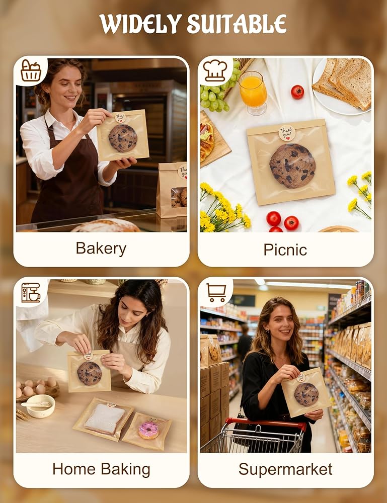 Complete Set: 100 paper bags for cookies and 120 thank-you stickers, extra labels provide a buffer for unexpected situations, ensuring your baking business and home parties are prepared whenever you need them