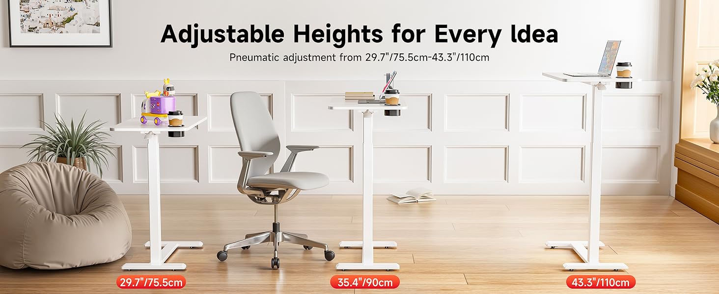 【Pneumatic Adjustable Height】Okinrolling desk adjustable height features a smooth pneumatic lift system for easy height adjustment from 29.7″ to 43.3″, Lower and higher with just one hand squeeze the handle, quickly adjust to fit various positions for added comfort. Whether you're reading, eating, working, or relaxing, you can ensure healthy posture and reduce discomfort if you use hospital bed. This adjustable desk is perfect for users of all ages and abilities