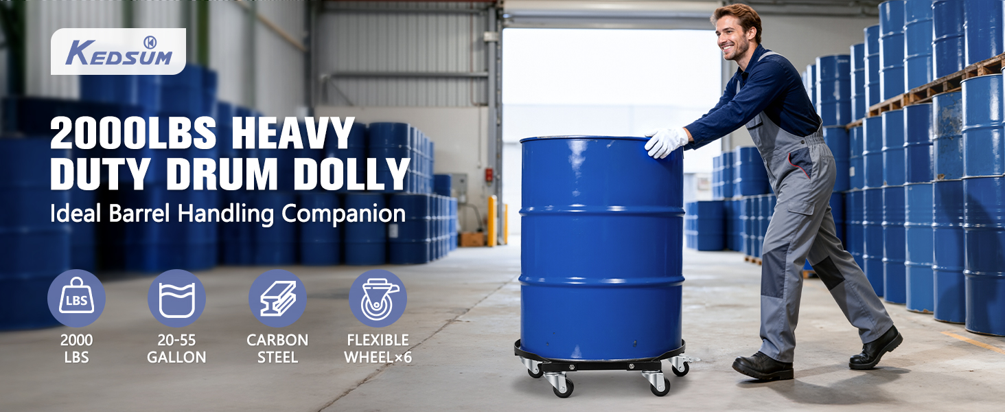 KEDSUM 55 Gallon Drum Dolly, Anti-Tip 6-Wheel Heavy Duty Drum Dolly, Large Panel for Versatile Use in 20-55 Gal Drums & Barrel, Steel Dollies Up to 2000-Pound Capacity for Garages Warehouse Workshop