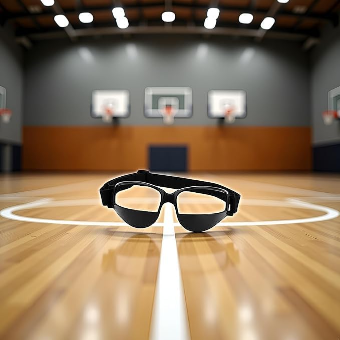 TRAINING AID: Basketball dribbling goggles designed to restrict downward vision, forcing players to keep their head up and develop better ball-handling skills without looking at the basketball