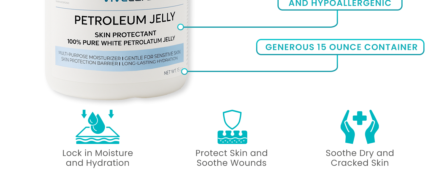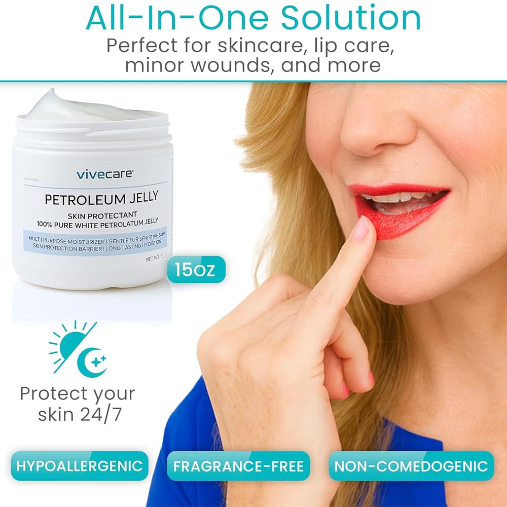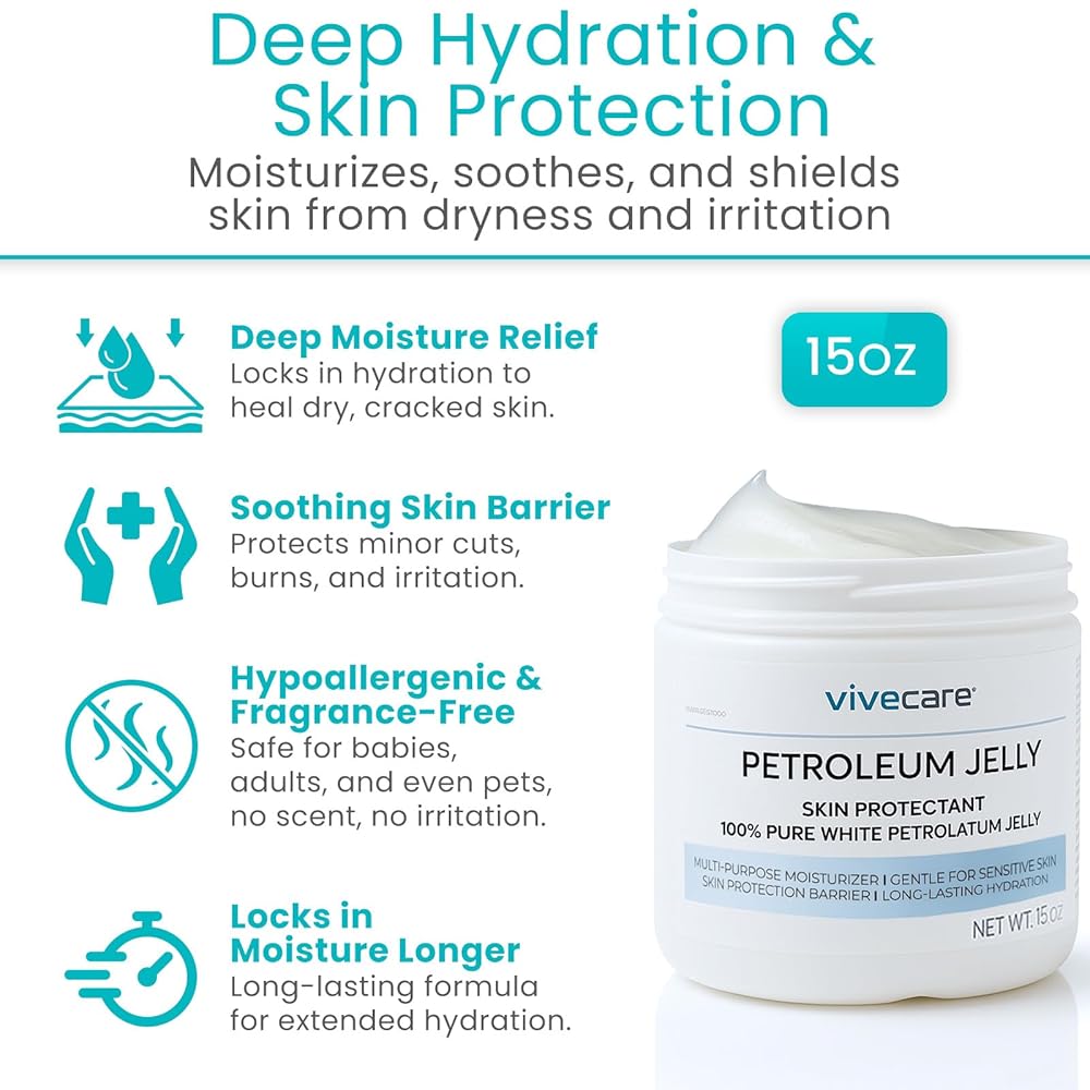 MULTI-PURPOSE SKIN CARE: Versatile petroleum jelly serves as a moisturizer, skin protectant, and healing aid for various skincare needs. Use it to address windburn, chafing, minor wounds, and general dryness throughout the body