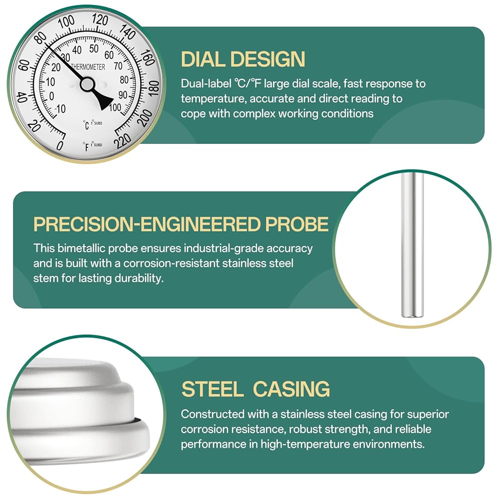 Precision Monitoring: Dual scale dial, synchronized display of ℃ / ℉, at a glance in the use of the process of conversion-free, accurate readings, improve work efficiency