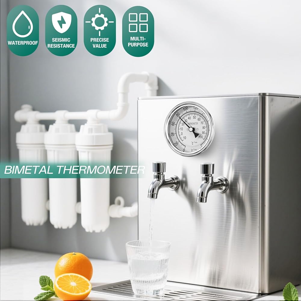 tainless steel casting process, equipped with extended temperature sensing probe and double scale dial, designed for all types of industrial fluids and media temperature monitoring design, suitable for long-term stability of temperature measurement under severe working conditions.