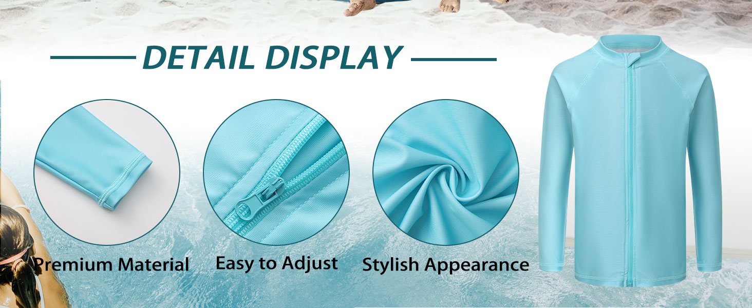 »»»» NO MORE SUNRAY WORRY «««« This girls long sleeve swim shirt offers full coverage and comfort along with its built-in sun protection by applying the UPF 50+ rated fabrics. Enjoy a playful and carefree vacation with our girls rash guard swim shirts.