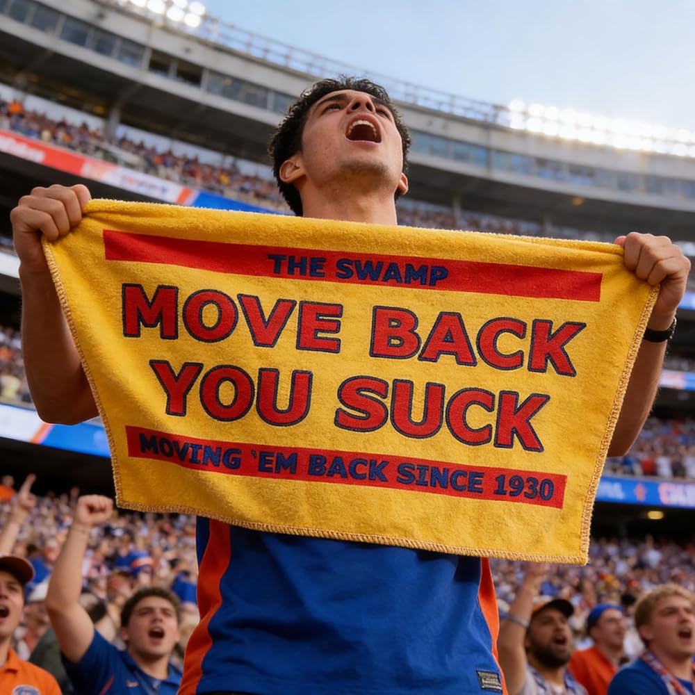 Turn up the heat and the humor on game day with the ultimate fan taunt: the “Move Back You Suck” Sports Towel! This isn't just a towel; it's your official sideline weapon and a hilarious declaration of fan dominance. Wave it proudly in the stands to rally your team and playfully remind the opposition of their place. Made for the dedicated college football fan, this towel combines essential function with fearless fun. Crafted from highly absorbent, quick-dry material, it's perfect for wiping away sweat on a tense fourth down or drying your hands during a celebratory snack. The bold, screen-printed slogan won't fade, wash after wash, ensuring your spirited message lasts all season long. Lightweight and portable, it easily clips to a bag or belt loop for instant access. Whether you're gifting it to a university student, an alumni superfan, or treating yourself, this towel is a must-have game day accessory that scores big on personality and school spirit!