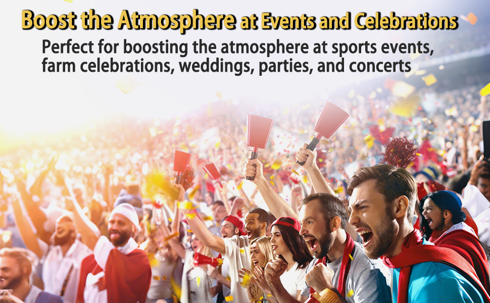 【Versatile for Various Occasions】These multifunctional noise makers are perfect for cheering at football, basketball, soccer, and marathon races, enhancing the atmosphere of farm celebrations (such as training cattle or sheep), adding excitement to weddings, parties, or concerts, and can also be used as school bells or emergency alarms for the elderly.
