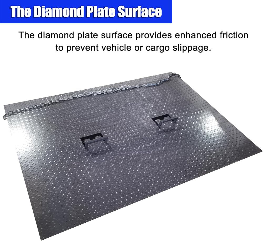 Anti‑Slip & High‑Visibility Safety Design: Our dock ramp features a diamond‑plate steel surface for superior anti‑slip performance, paired with yellow‑black warning strips to improve visibility in low‑light and night conditions, enhancing loading and unloading safety.