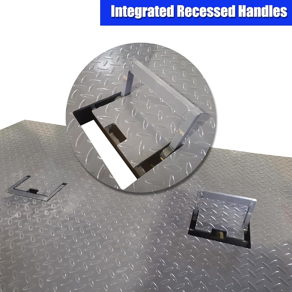 Convenient Transport with Hidden Foldable Handles: This forklift ramp is equipped with recessed hidden foldable handles for easy manual or forklift movement; the foldable design saves storage space and improves overall practicality for daily operation.