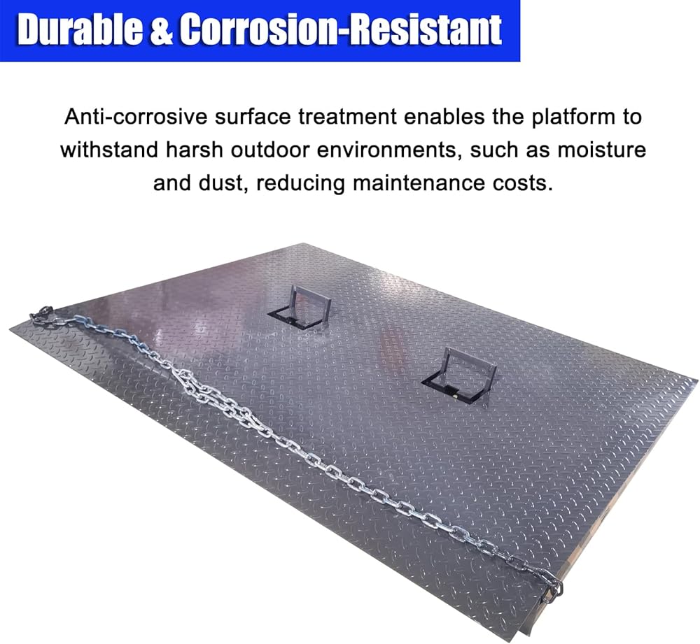 Heavy Duty 13200lbs Load Capacity: Constructed with thickened steel plates and reinforced rib structures, this container ramp platform supports up to 6000kg (13227LBs) load capacity, resisting deformation from frequent forklift and pallet jack use for long-lasting durability.