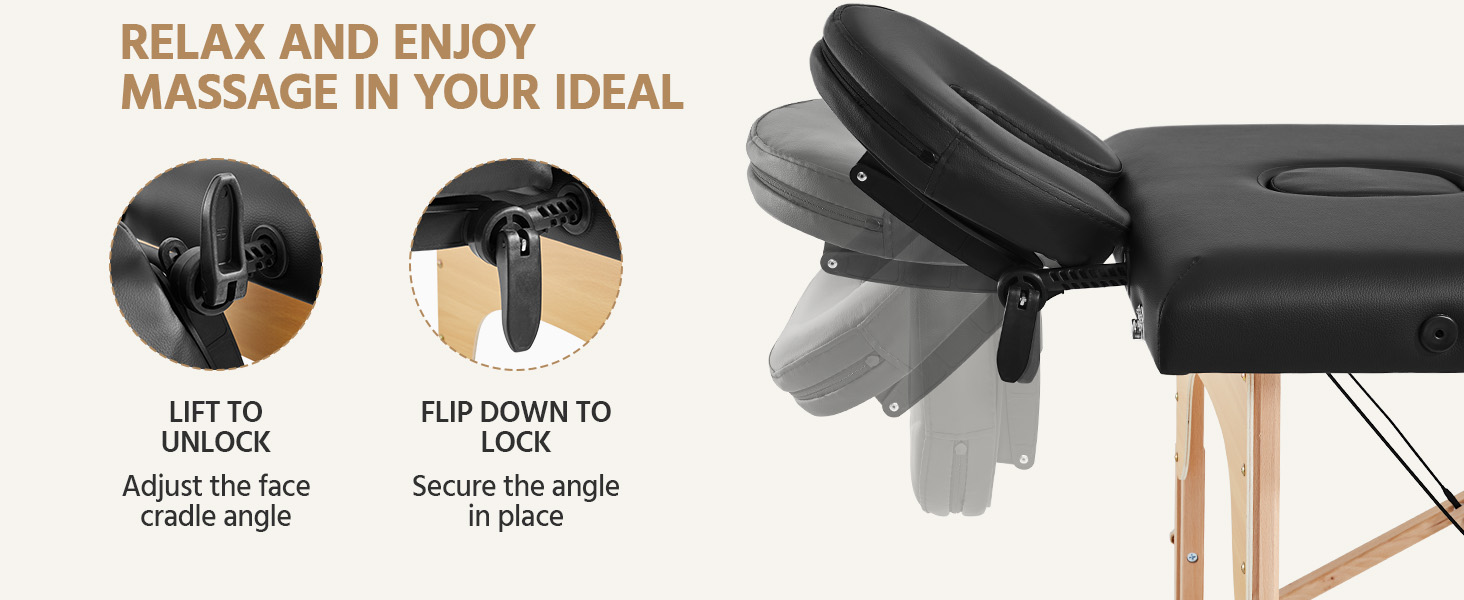 Height-adjustable Headrest: The headrest of the beauty table, also face cradle, is removable if you do not need it. It is adjustable for different heights or angles, too. The headrest adopts a quick-fix locking device, through which the angle of the headrest can be adjusted. Foldable massage tables