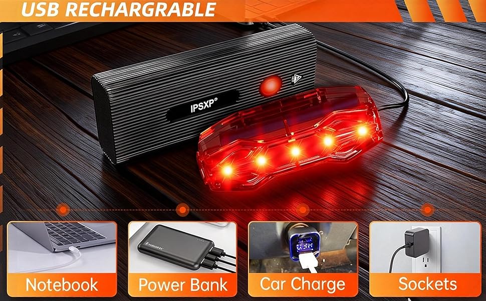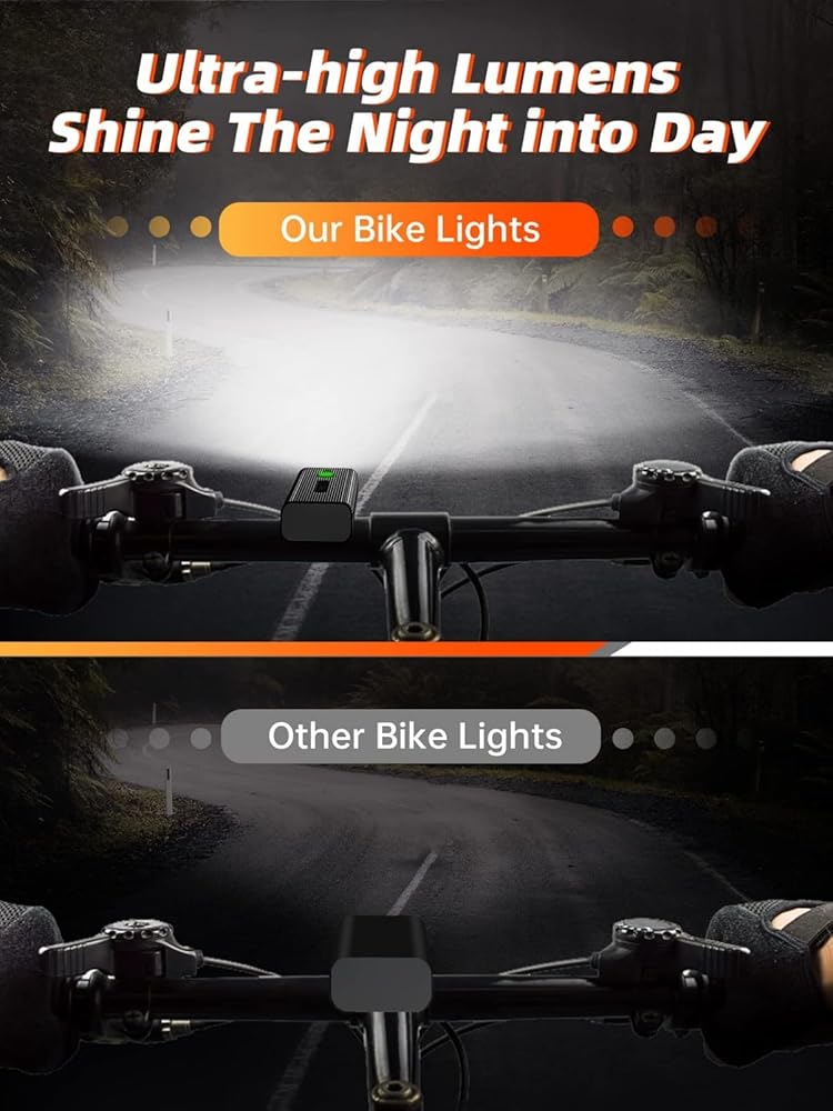 USB-C Fast Charging + High-Lumen Bright Light: Equipped with a USB-C fast charging port, the bike flashlight features rapid power replenishment and strong compatibility for quick top-ups anytime. It delivers high-lumen bright light output with long-range illumination; paired with multiple brightness modes, it clearly lights up the road ahead for safer night riding.