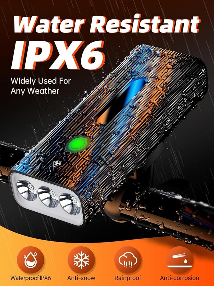 IPX6 Waterproof Rating: Meeting the IPX6 waterproof standard, the LED lights for bike withstand heavy rain downpours and muddy splashes. Stable operation is maintained even when cycling in rainy or humid weather, regardless of the lighting mode activated.