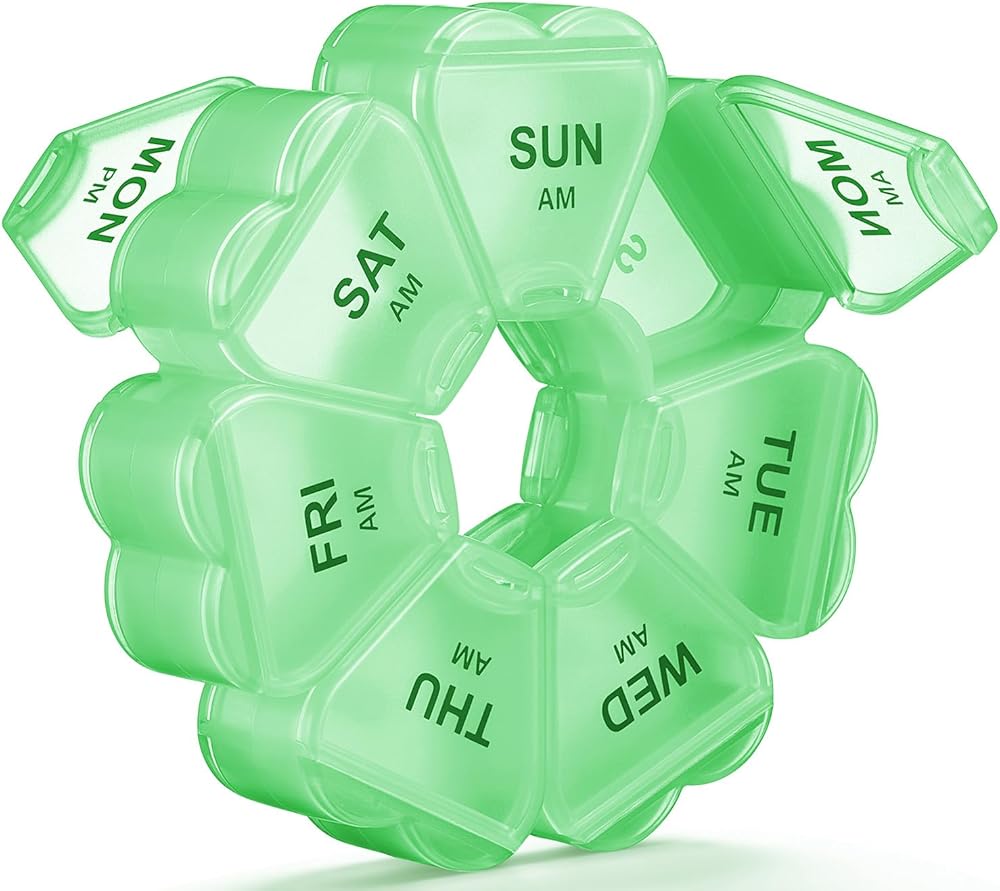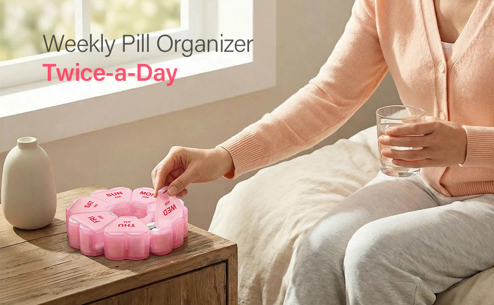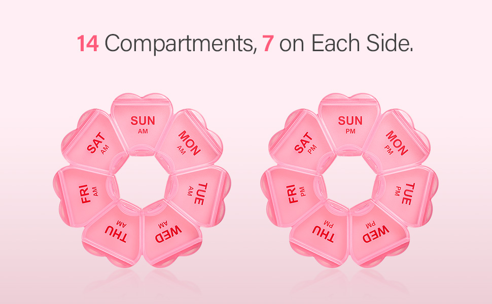 14-Compartment Weekly pill Organizer: Each day is clearly marked and divided into AM and PM slots, perfect for managing twice-daily medication schedules.