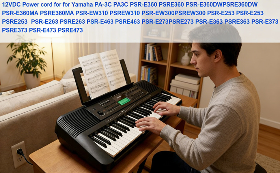 - 12VDC power cord compatible with Yamaha DGX-200 Keyboard PSR-195 PSR-e373 PSR-12 Steinberg CC121 PSR-E360 PSRE360 PSR-E360DW PSRE360DW PSR-E360MA PSRE360MA PSR-EW310 PSREW310 PSR-EW300 PSREW300 PSR-E253 PSRE253 PSR-E263 PSRE263 PSR-E463 PSRE463 PSR-E273 PSRE273 PSR-E363 PSRE363 PSRE373 PSR-E473 PSRE473