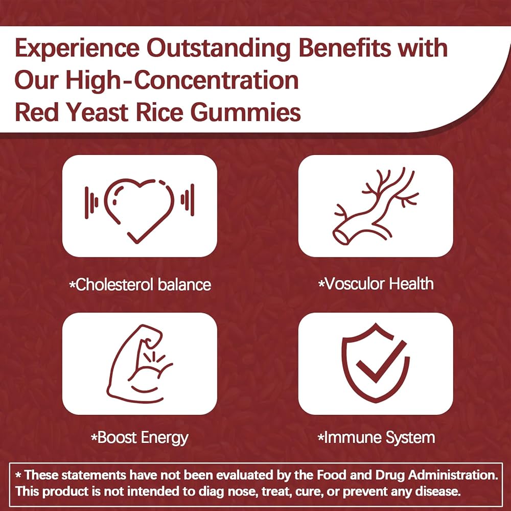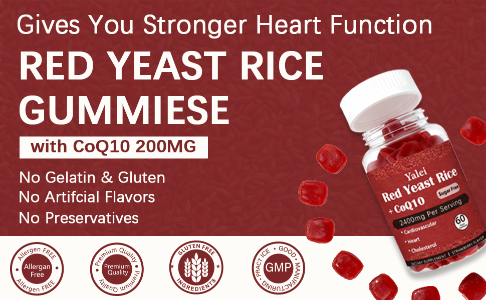 【Manufactured in GMP-Compliant Facilities】: Your health is our top priority. That's why every batch of our red yeast rice and coenzyme Q10 gummies is rigorously produced in GMP-certified facilities adhering to the strictest quality standards. We are committed to transparency and purity—our products undergo third-party testing so you can trust that every bottle delivers safe, high-quality supplements.